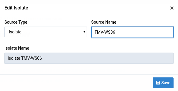 A dialog box will show up like the one below. The fields are populated with the current isolate data.