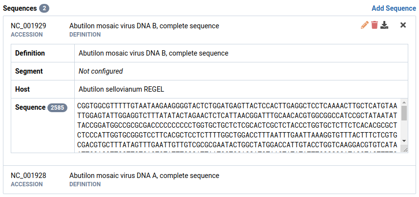 You can pull sequence records from GenBank by entering a valid GenBank accession in the Accession field and clicking the icon.